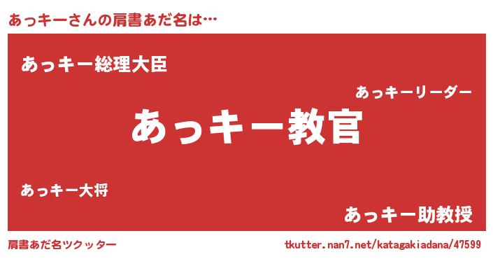 | 意味不明あだ名 | 『住所不定無職あっキー(98歳)』 |
