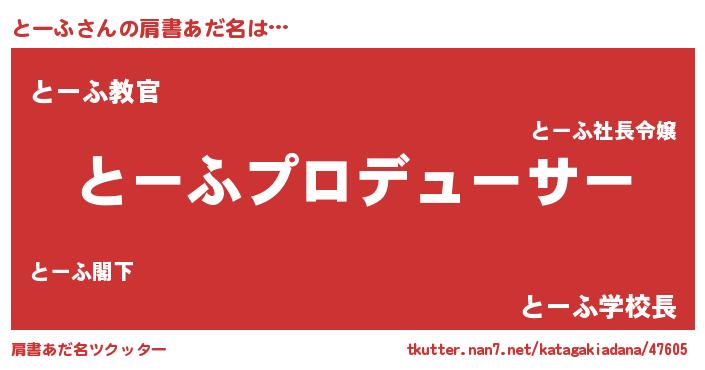 | ヒーロー風カッコイイあだ名 | 『仮面トーダー』『慈愛の使者とーふ』 |