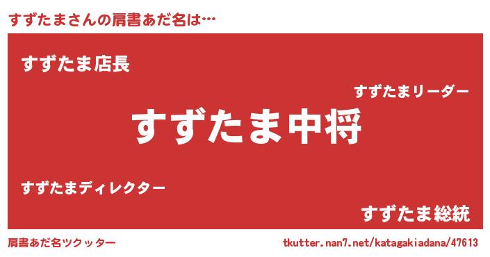 | 男性向けラノベタイトル風あだ名 | 『スズタマスレイヤー』 |