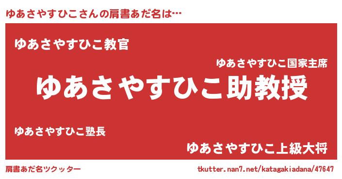 | 伝説のあだ名 | 『救世主となる技術者ゆあさやすひこ』 |