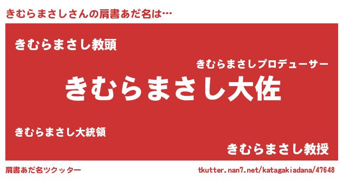 | 男性向けラノベタイトル風あだ名 | 『キムラマサシスレイヤー』 |
