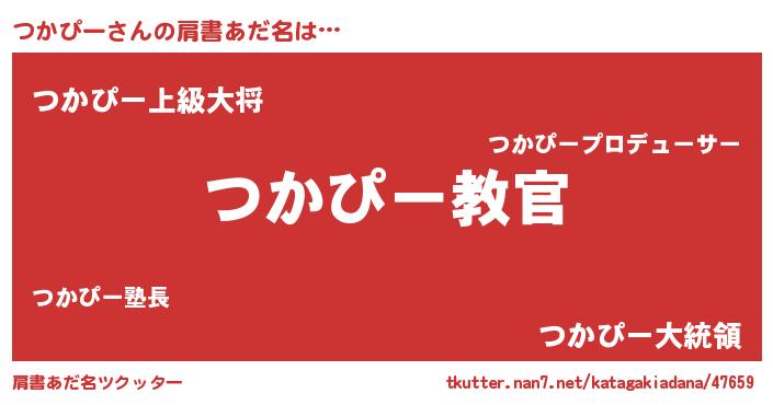 | ヒーロー風カッコイイあだ名 | 『仮面ツカダー』『ウルトラつかぴーマン』 |