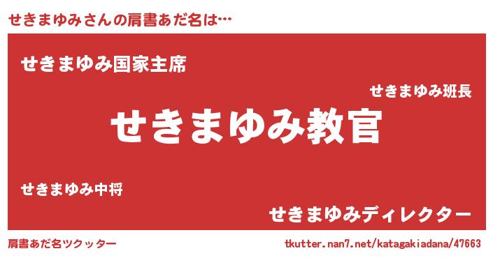 | 男性向けラノベタイトル風あだ名 | 『この素晴らしい世界にせきまゆみを!』 |