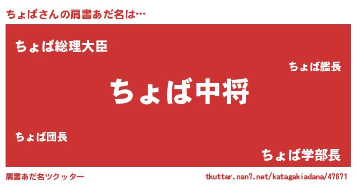| 男性向けラノベタイトル風あだ名 | 『チョバスレイヤー』 |