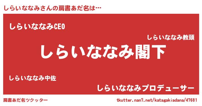 | ヘコむあだ名 | 『しらふぇ~』『しらいななみ(笑)』 |