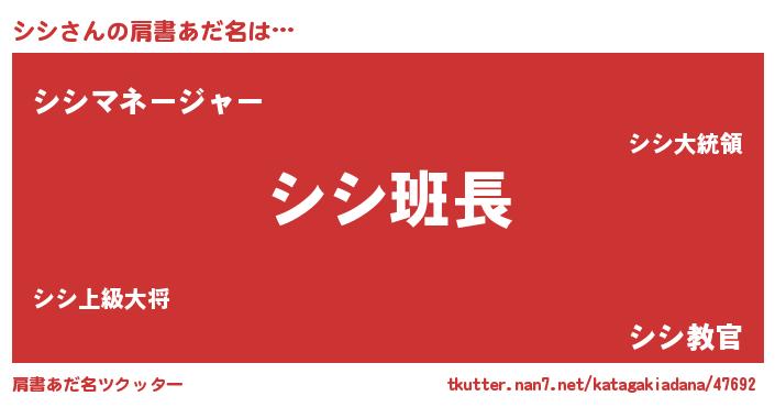 | 胡散臭い通販商品みたいなあだ名 | 『信頼と実績のネックレス…その名も「シシ」』 |