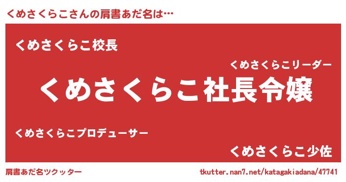 | ヘコむあだ名 | 『くめもー』『くめさくらこ(爆)』 |