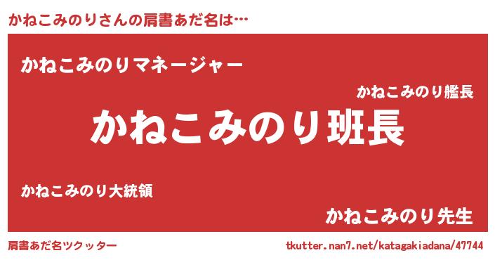 | 意味不明あだ名 | 『とにかく怪しいかねこみのり』 |