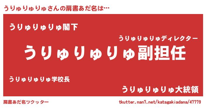 | 胡散臭い通販商品みたいなあだ名 | 『来世でも幸せになれる水素水…その名も「うりゅりゅりゅ」』 |