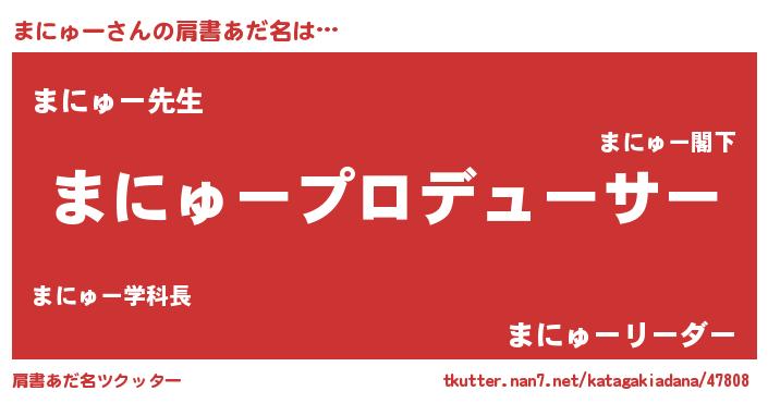 | ヘコむあだ名 | 『まにゅー(震え声)』『まにお』 |