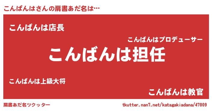 | 意味不明あだ名 | 『永久保存こんばんは』『自称こんばんは』 |