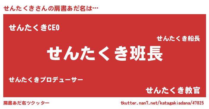 | ヒーロー風カッコイイあだ名 | 『天弓騎士セン』『スーパーセンタクキ』 |