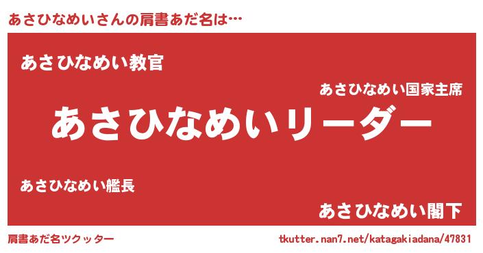 | 女子向けラノベタイトル風あだ名 | 『あさひなめいは平凡を望む』 |