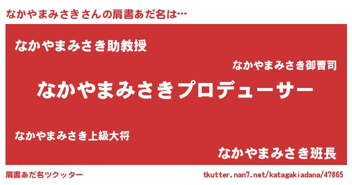 | 男性向けラノベタイトル風あだ名 | 『なかやまみさきに滅ぼされるだけの簡単なお仕事です』 |