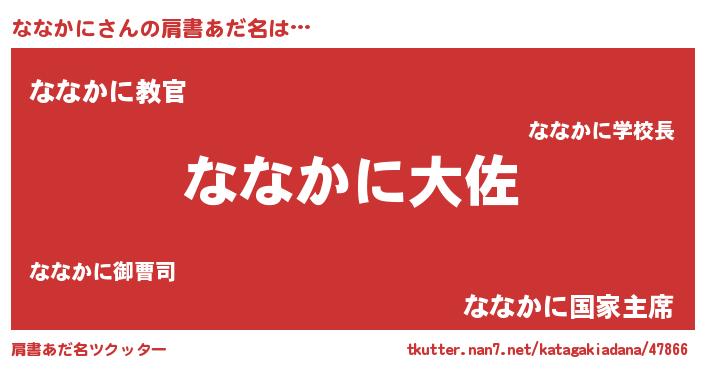 | ヒーロー風カッコイイあだ名 | 『仮面ナナダー』『ウルトラななかにマン』 |
