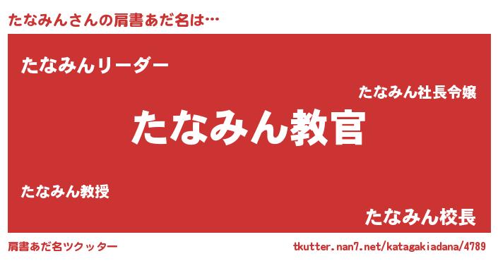 | 男性向けラノベタイトル風あだ名 | 『魔弾の王とたなみん』『たなみんの憂鬱』 |