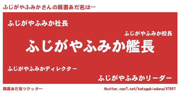 | 女子向けラノベタイトル風あだ名 | 『シンデレラふじがやふみか家の靴箱館』 |