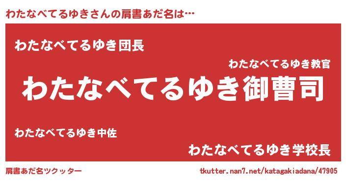 | 胡散臭い通販商品みたいなあだ名 | 『モテモテ間違いなし霊験あらたかなお札…その名も「わたなべてるゆき」』 |