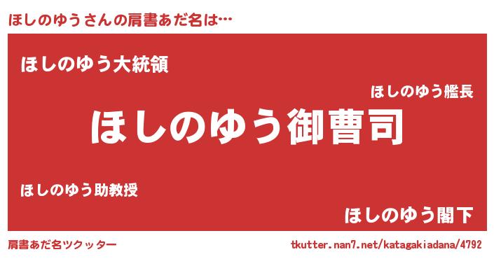 | ファンタジー風あだ名 | 『ホシフェル』『エターナルホシノユウー』 |
