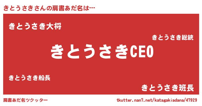 | 男性向けラノベタイトル風あだ名 | 『きとうさきの憂鬱』 |