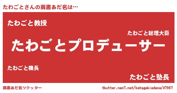 | ポケモン風あだ名 | 『タワゴンZ』『タックウザ』 |