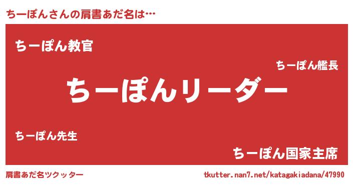 | 男性向けラノベタイトル風あだ名 | 『ちーぽんの嫁は女の子じゃないと思った?』 |
