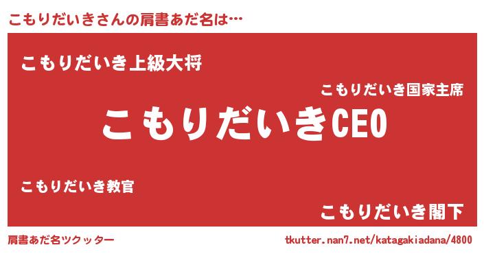 女子向けラノベタイトル風あだ名 | 『誰かこのこもりだいきを説明してください! ~契約から始まるウェディング~』 |