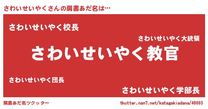 | 男性向けラノベタイトル風あだ名 | 『この素晴らしい世界にさわいせいやくを!』 |
