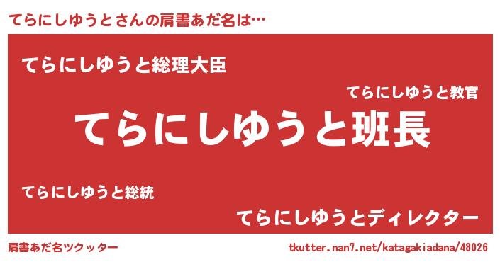 | 男性向けラノベタイトル風あだ名 | 『てらにしゆうとの嫁は女の子じゃないと思った?』 |