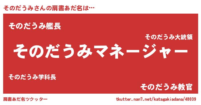 | 意味不明あだ名 | 『住所不定無職そのだうみ(9歳)』 |