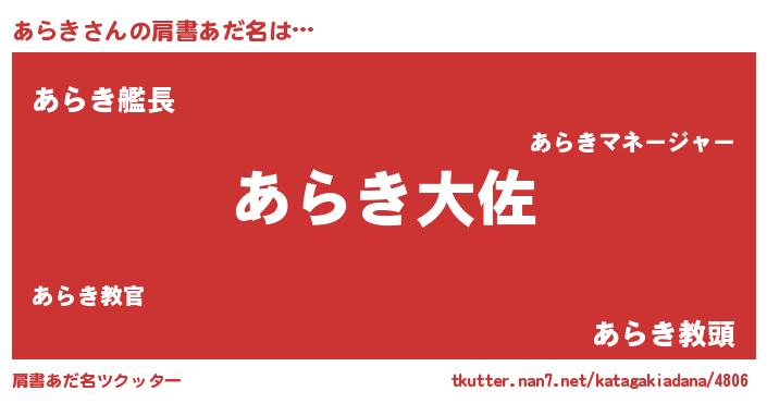 | 男性向けラノベタイトル風あだ名 | 『転生したらあらきだった件』 |