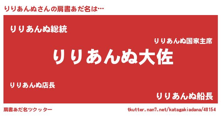 | 男性向けラノベタイトル風あだ名 | 『転生したらりりあんぬだった件』 |