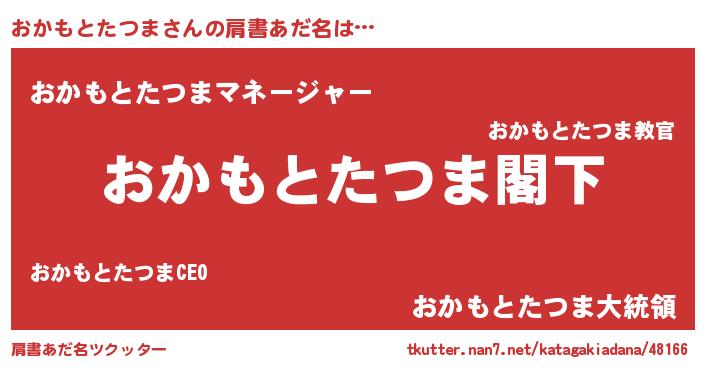 | 意味不明あだ名 | 『自称おかもとたつま』 |