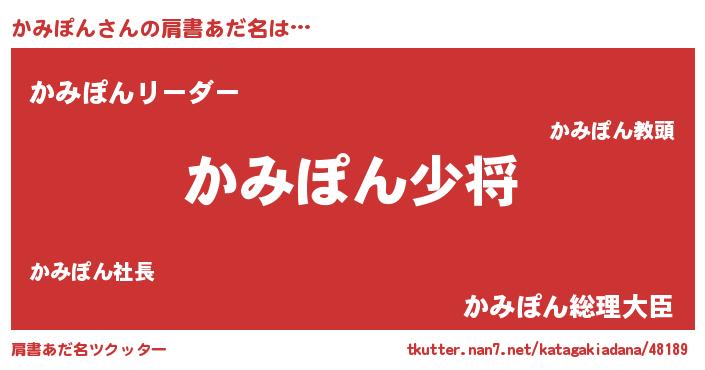 | 男性向けラノベタイトル風あだ名 | 『かみぽん~年齢イコール彼女いない歴の魔法使い~』 |