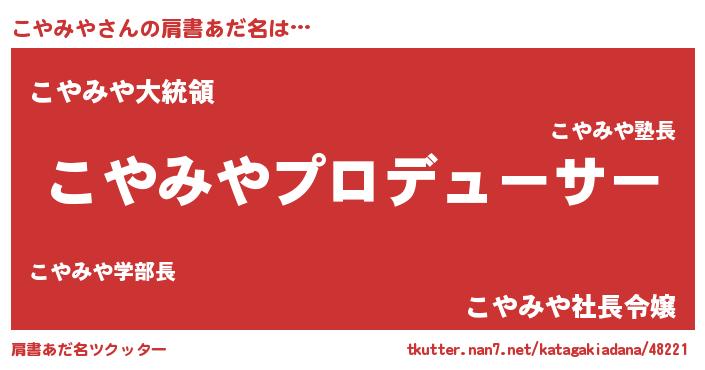 | 意味不明あだ名 | 『こやみやフォーエバー』 |