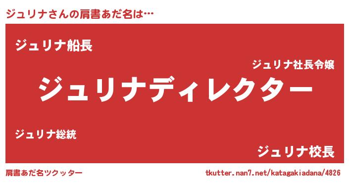 | 胡散臭い通販商品みたいなあだ名 | 『来世でも幸せになれる健康食品…その名も「ジュリナ」』 |