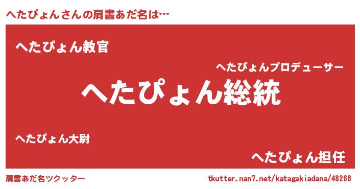 | 意味不明あだ名 | 『自称へたぴょん』『永久保存へたぴょん』 |