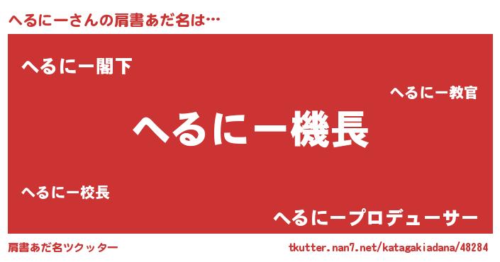 | 意味不明あだ名 | 『自称へるにー』『永久保存へるにー』 |