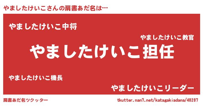 | 男性向けラノベタイトル風あだ名 | 『やましたけいこという概念が存在しない退屈な世界 』 |