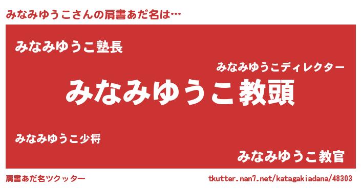 | ポケモン風あだ名 | 『ゼニミナ』『ヒミナミユウコ』 |