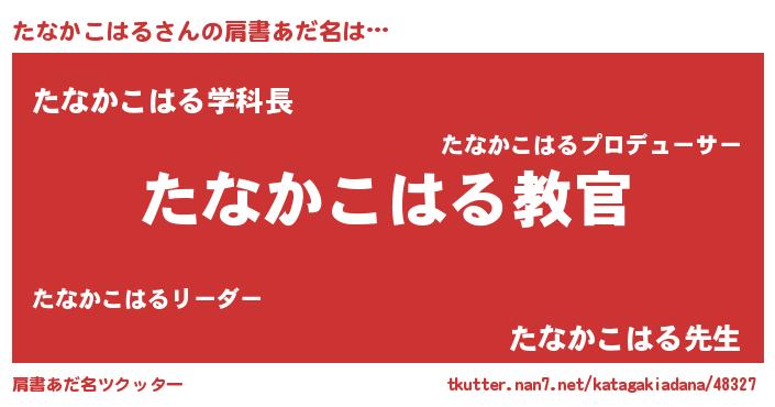 | 男性向けラノベタイトル風あだ名 | 『この素晴らしい世界にたなかこはるを!』 |