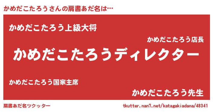 | 男性向けラノベタイトル風あだ名 | 『かめだこたろうに滅ぼされるだけの簡単なお仕事です』 |
