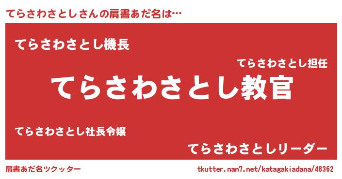 | ヘコむあだ名 | 『てらを』『てらさわさとし(遠い目)』 |