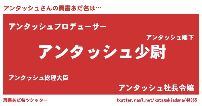 | 女子向けラノベタイトル風あだ名 | 『アンタッシュの玉の輿計画!』 |