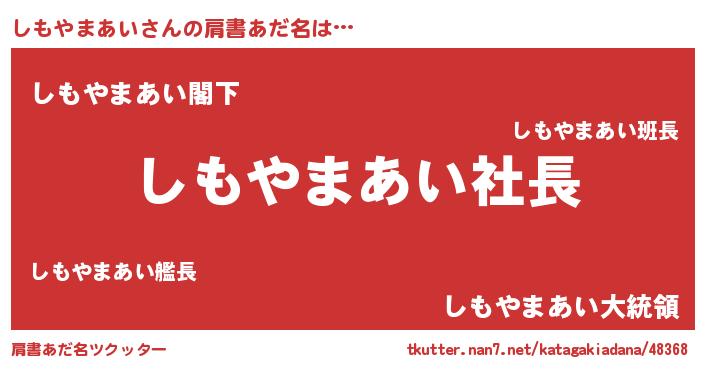 | 男性向けラノベタイトル風あだ名 | 『しもやまあいの憂鬱』 |