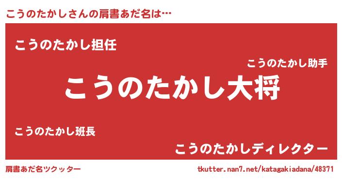 | 男性向けラノベタイトル風あだ名 | 『コウノタカシスレイヤー』 |