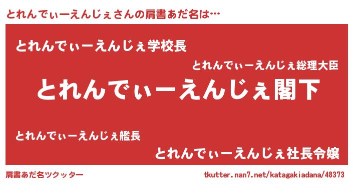 | 欧米人風あだ名 | 『ケンブリッジとれんでぃーえんじぇ』 |