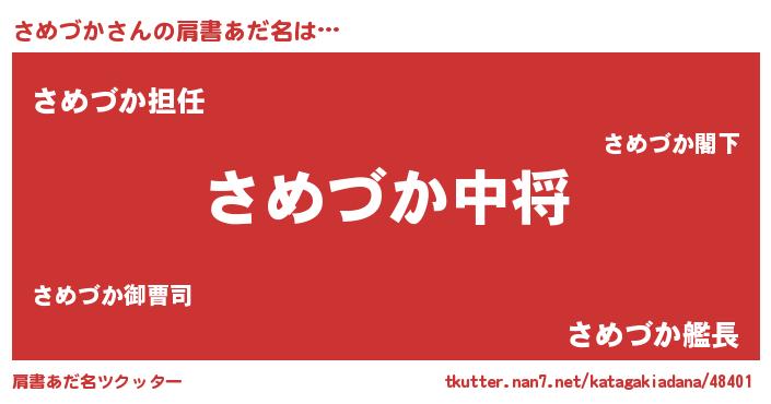 | ヘコむあだ名 | 『さめづか(震え声)』『さめもー』 |