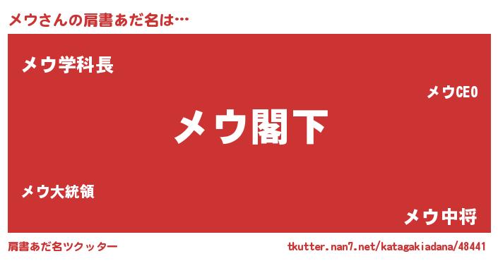 | ヒーロー風カッコイイあだ名 | 『ウルトラ戦士メウ』『慈愛の使者メウ』 |