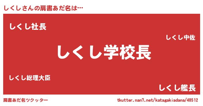 | ヒーロー風カッコイイあだ名 | 『正義の使者しくし』『スーパーシクシ』 |